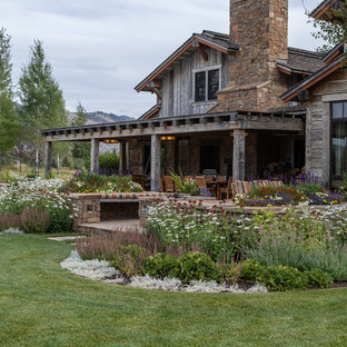 Rustic modern on lake. Rustic outdoor kitchen a full outdoor kitchen is nestled just behind the fireplace and pizza oven on this extensive patio. Rustic chic accents were practically made for the backyard as their bucolic feel fits well with a natural setting.